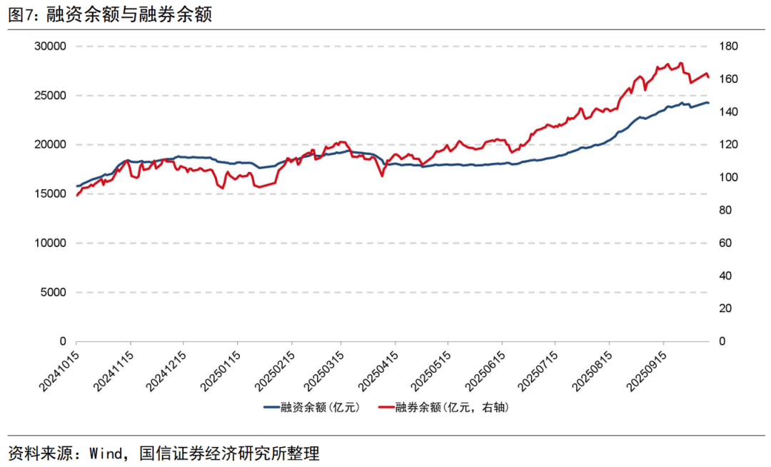 截至 20251010 两融余额为24418亿元,其中融资余额24257亿元,融券余额161亿元。两融余额占流通市值比重为2.5%,两融交易占市场成交额比重为11.4%。
