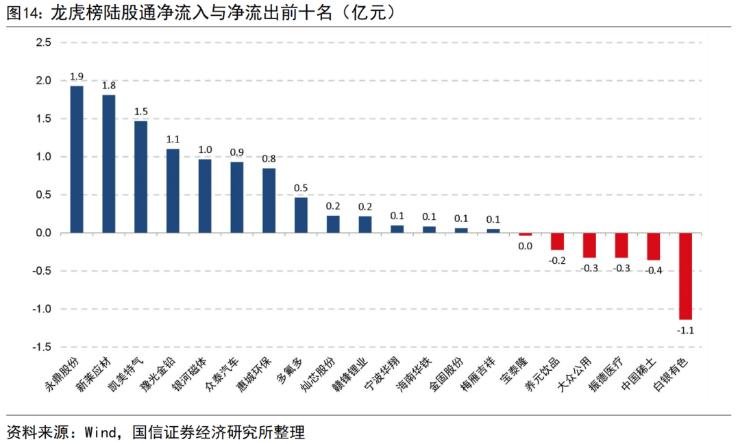 20251013披露龙虎榜数据中,陆股通净流入前十的股票是永鼎股份、新莱应材、凯美特气、豫光金铅、银河磁体、众泰汽车、惠城环保、多氟多、灿芯股份、赣锋锂业、宁波华翔、海南华铁、金固股份、梅雁吉祥等,陆股通净流出前十的股票是白银有色、中国稀土、振德医疗、大众公用、养元饮品、宝泰隆等,下图展示了今日龙虎榜披露的陆股通买卖股票中净流入与净流出的前十名,不足十名时直接取现有数量。