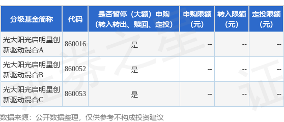 2025-11-04百家乐,百家乐官方网站,百家乐APP下载,百家乐游戏平台证券之星消息,11月4日上海光大证券资产管理有限公司发布《光大阳光启明星创新驱动主题混合型集合资产管理计划暂停申购(转换转入、定期定额投资)公告》。公告中提示,为了保护份额投资者利益,自2025年11月4日起光大阳光启明星创新驱动主题混合型集合资产管理计划暂停申购(转换转入、定期定额投资),下属分级基金调整明细如下: