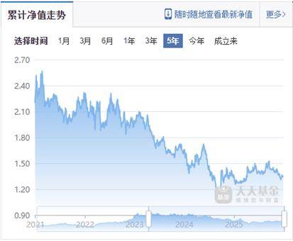 但另一些基金经理管理的产品却出现较大亏损。现任副总经理的姚志鹏,是嘉实基金重点打造的明星基金经理之一。但姚志鹏管理的嘉实时代先锋三年持有混合A在2021-2024年的封闭期内,净值跌幅曾超40%。其管理的嘉实智能汽车股票基金,虽然近三年累计净值最高时曾接近5,但期间内的最大回撤幅度也近60%,跑输同类产品同期的平均水平,可能源于持仓过于集中,以及投资策略与周期错配。直到2025年,其累计净值才重回3.0以上区间。