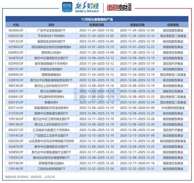 另一方面,根据公告日期口径,12月共有24只基金宣布延募,包括广发国证工业软件主题ETF、富国恒生生物科技ETF等产品。