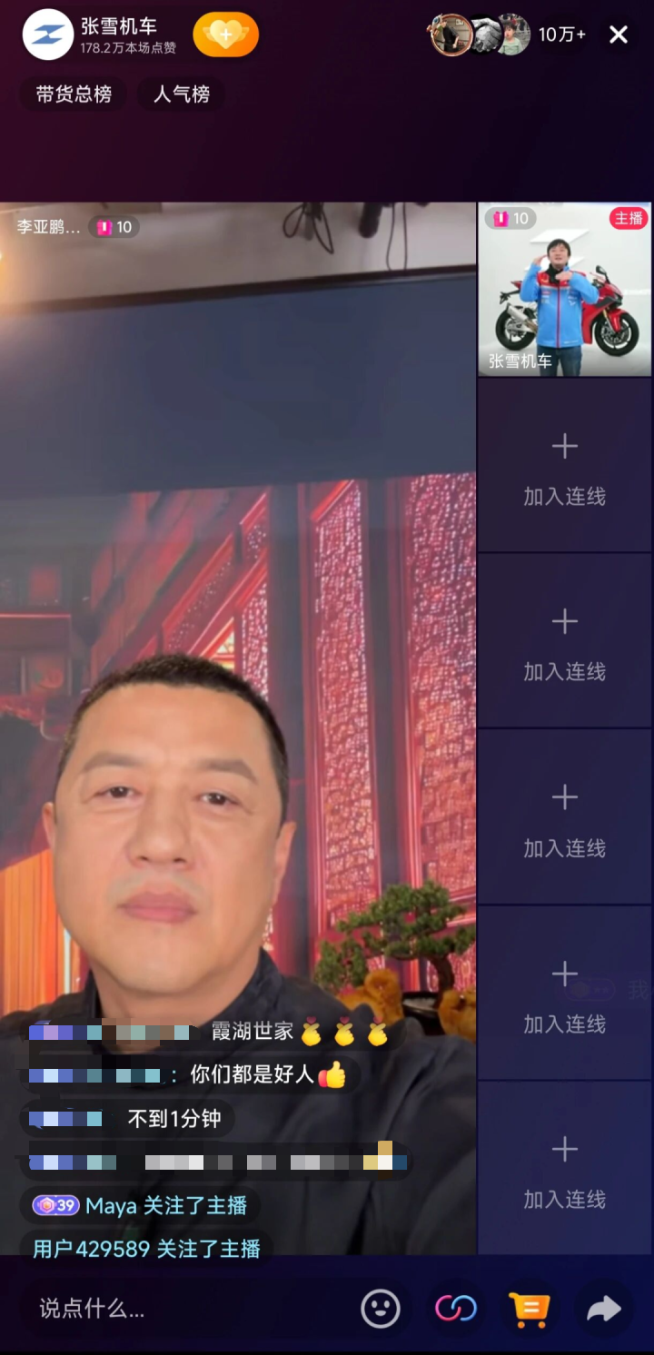 在今晚的直播中,李亚鹏直播连线中感谢张雪机车对嫣然天使医院的支持,也表达了对张雪机车夺冠的祝贺。