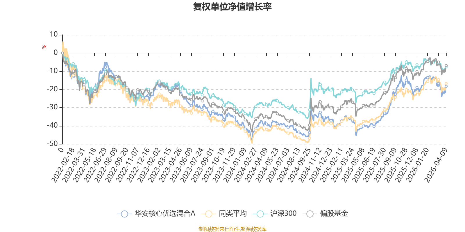 截至4月9日,华安核心优选混合A近三个月复权单位净值增长率为-5.26%,位于同类可比基金472/621;近半年复权单位净值增长率为-7.00%,位于同类可比基金498/621;近一年复权单位净值增长率为47.05%,位于同类可比基金221/618;近三年复权单位净值增长率为-1.81%,位于同类可比基金434/559。