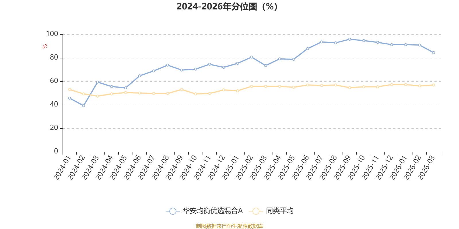 通过所选区间该基金净值增长率分位图,可以观察该基金与同类基金业绩比较情况。图为坐标原点到区间内某时点的净值增长率在同类基金中的分位数。