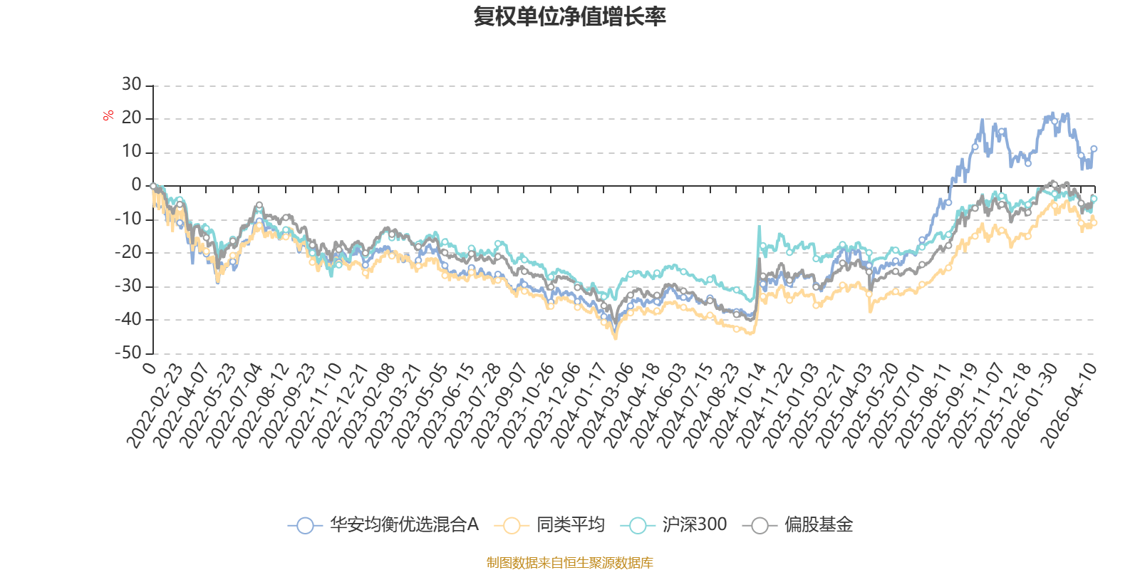 截至4月10日,华安均衡优选混合A近三个月复权单位净值增长率为-4.44%,位于同类可比基金215/265;近半年复权单位净值增长率为-4.13%,位于同类可比基金223/265;近一年复权单位净值增长率为55.43%,位于同类可比基金70/265;近三年复权单位净值增长率为35.62%,位于同类可比基金69/261。